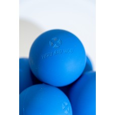 Balle de Massage type Lacrosse Ball bleu foncée avec la gravure de la marque et de son logo, en caoutchouc dur pour auto-massage by Very Bad Wod.