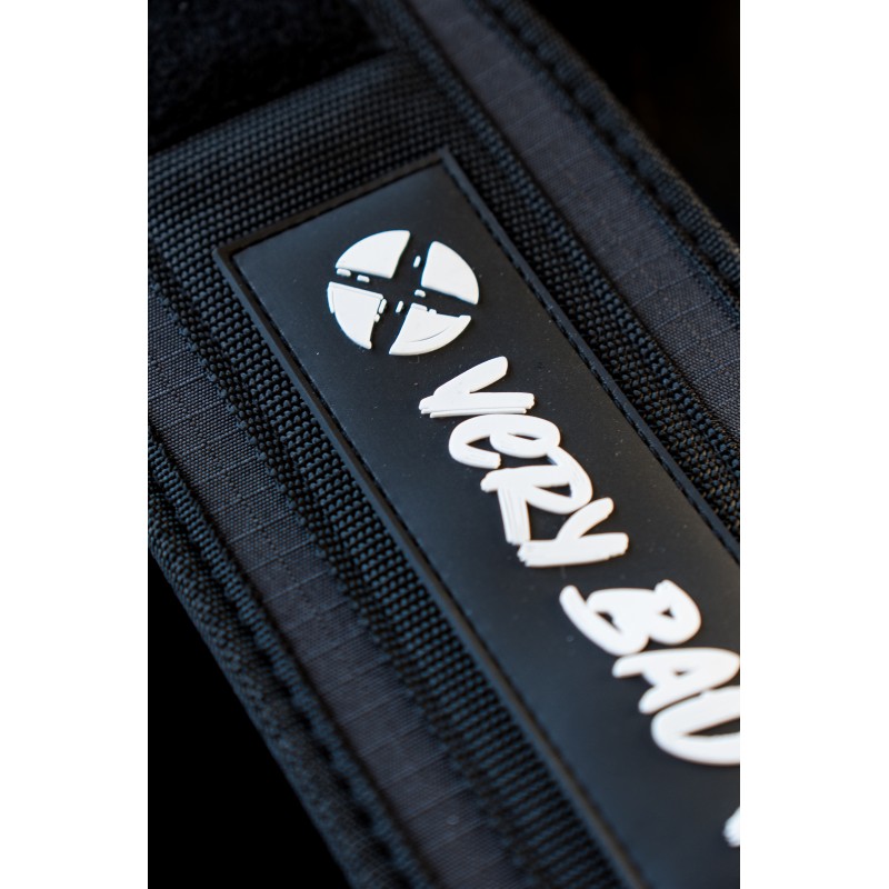 Ceinture de protection VERY BAD WOD couleur noire à patchs personnalisables pour l'haltérophilie avec le logo VERY BAD WOD sur l'arrière.
