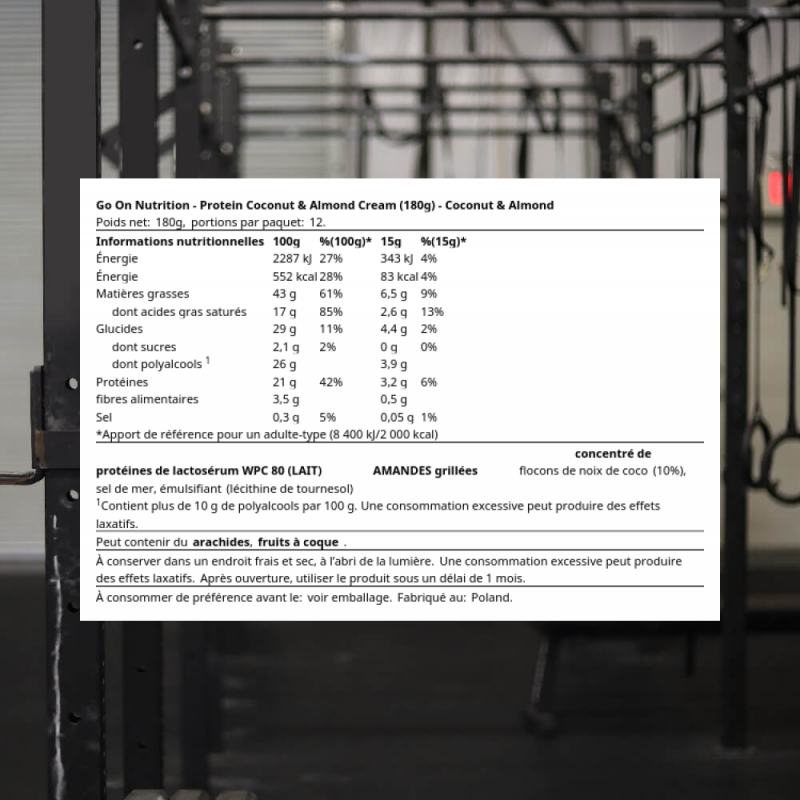 La pâte à tartiner PROTEIN PROTEIN COCONUT - ALMOND CREAM de chez Go On Nutrition est un produit unique en son genre, en teneur élevée en protéines - 24 % !