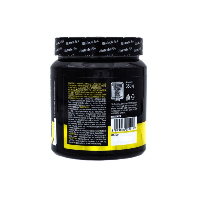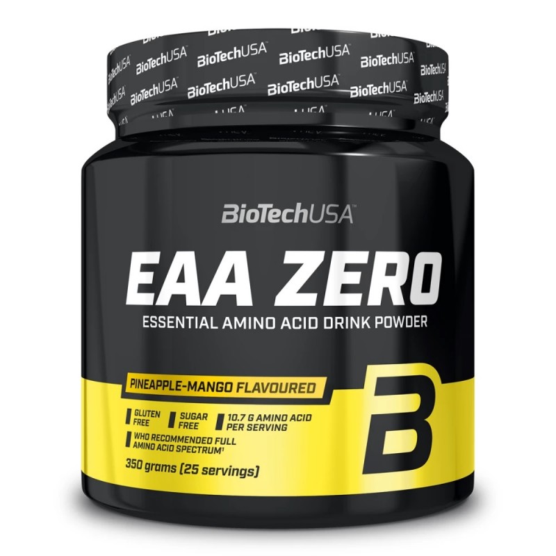 Poudre d'acides aminés EAA ZERO saveur ANANAS MANGUE proposée par BIOTECHUSA en version 350 Gr.