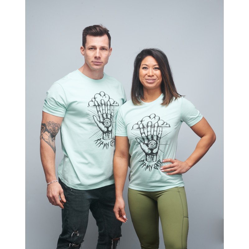 T-shirt unisexe vert clair issu de la collaboration entre VERY BAD WOD et Will Lennart Tattoo modèle RIP MY GRIP.