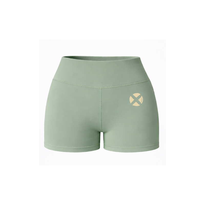 The Lucy green beige logo version is a dependable short femme entraînement intensif designed for demanding athletes. Its high waistband supports the core, while the stretchy fabric follows every movement naturally.
